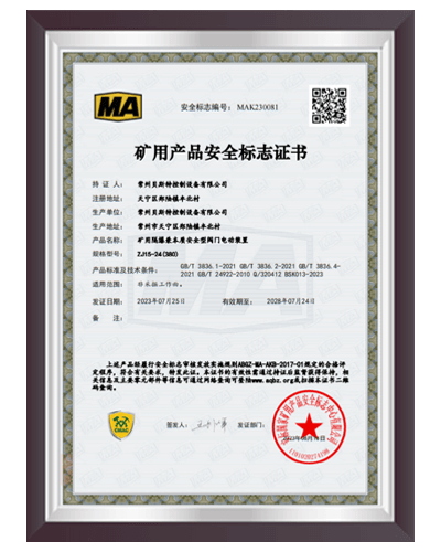 于2000年通過 ISO9001:2000質(zhì)量體系認(rèn)證,建立了完善的產(chǎn)品質(zhì)量控制體系;2006 年6月取得全國(guó)工業(yè)產(chǎn)品生產(chǎn)許可證;2008年9月取得礦用產(chǎn)品安全標(biāo)志證書;2012年取得8項(xiàng)礦用產(chǎn)品的專利證書。